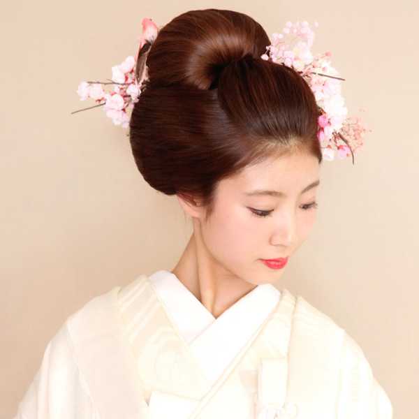 和装の地毛結い文金高島田から鬘、お着付けまで美しく仕上げます。